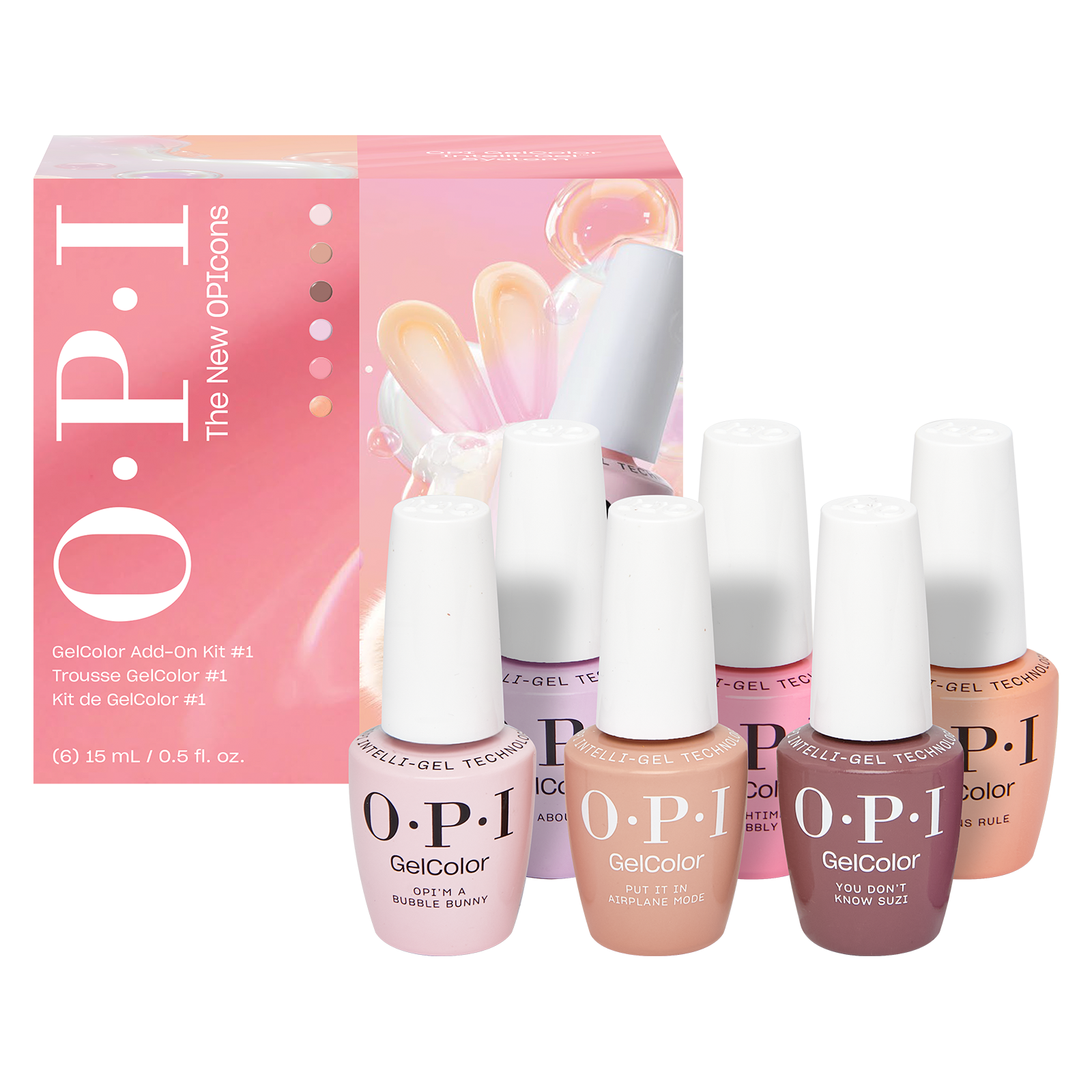 Includes: 6 - GelColor .5oz (Pompeii Pink, Shrimp Cocktail, Sunny Bunny, Strawberry Cosmo, Lincoln Park After Brunch, Big Apple Energy)